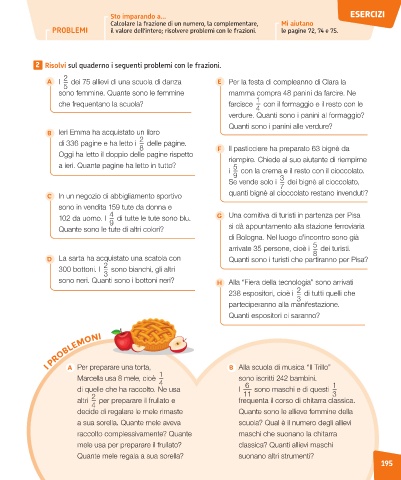 2 Risolvi sul quaderno i seguenti problemi con le frazioni.