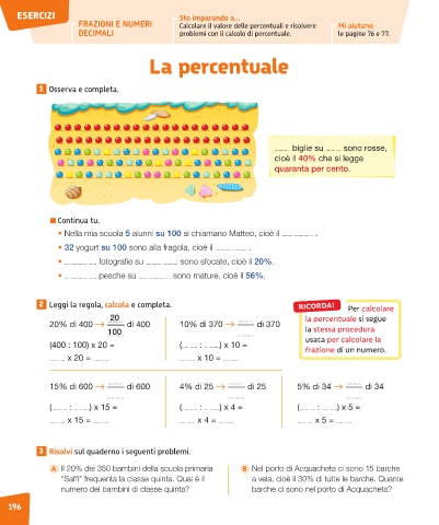A Il 20% dei 350 bambini della scuola primaria B Nel porto di Acquacheta ci sono 15 barche