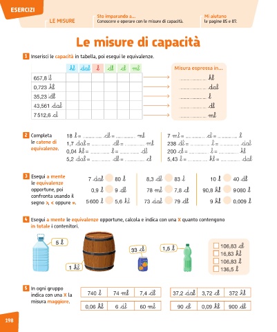 LE MISURE Conoscere e operare con le misure di capacità. le pagine 85 e 87.