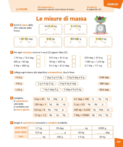 LE MISURE Conoscere e operare con le misure di massa. le pagine 86 e 87.