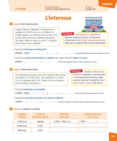 LE MISURE Calcolare il valore dell’interesse. la pagina 95.