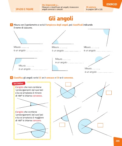SPAZIO E FIGURE angoli convessi e concavi. le pagine 109 e 110.