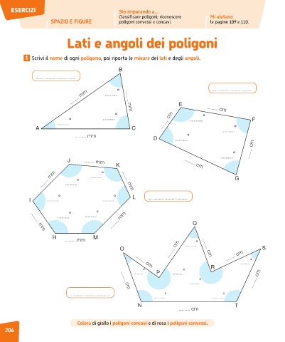 1 Scrivi il nome di ogni poligono, poi riporta le misure dei lati e degli angoli.