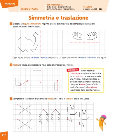 SPAZIO E FIGURE simmetriche, saper traslare figure. le pagine 114, 115 e 116.