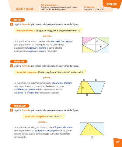 SPAZIO E FIGURE dell’area dei parallelogrammi. le pagine 123, 124 e 125.