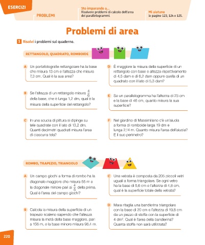 PROBLEMI dei parallelogrammi. le pagine 123, 124 e 125.