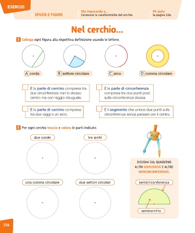 SPAZIO E FIGURE Conoscere le caratteristiche del cerchio. la pagina 136.