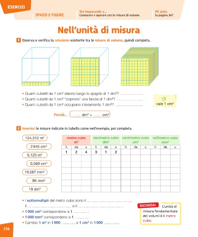 SPAZIO E FIGURE Conoscere e operare con le misure di volume. la pagina 147.
