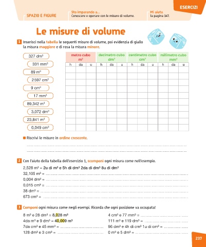 SPAZIO E FIGURE Conoscere e operare con le misure di volume. la pagina 147.