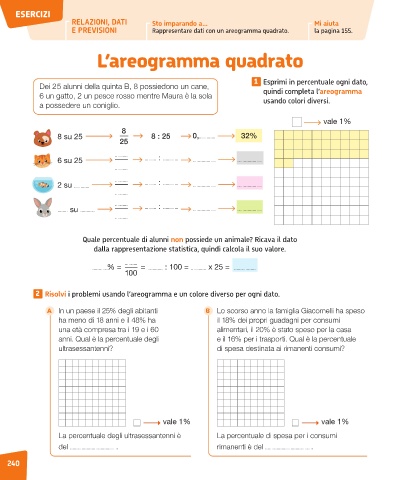 E PREVISIONI Rappresentare dati con un areogramma quadrato. la pagina 155.
