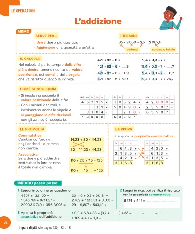 4 857 + 132 450 = 231,46 + 0,3 + 67,124 = con la proprietà commutativa.
