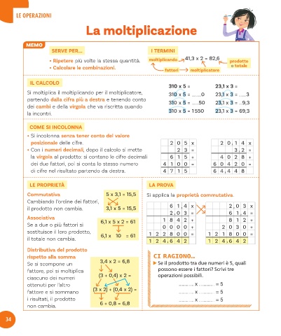 Si moltiplica il moltiplicando per il moltiplicatore, 310 x 5 = ............0 23,1 x 3 = .........3