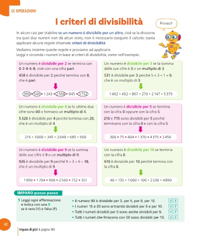 1 Leggi ogni affermazione • l numero 90 è divisibile per 3, per 5, per 9, per 10. V F