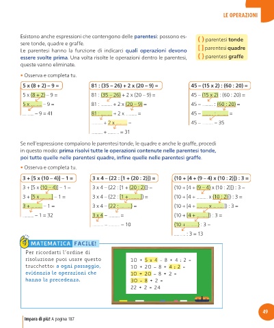 essere svolte prima. Una volta risolte le operazioni dentro le parentesi, { } parentesi graffe