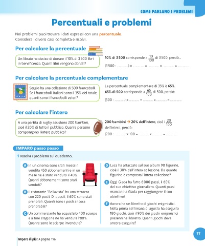 Un libraio ha deciso di donare il 10% di 3500 libri 10% di 3500 corrisponde a 100 di 3 500, perciò...