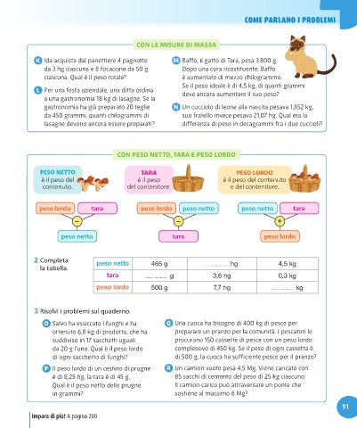 K Ida acquista dal panettiere 4 pagnotte M Baffo, il gatto di Tara, pesa 3 800 g.