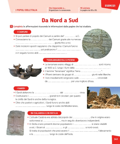 I POPOLI DELL’ITALIA Organizzare le conoscenze. le pagine da 50 a 55.
