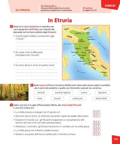 2 Quali risorse offriva il territorio dell’Etruria? Colora allo stesso modo il cartellino