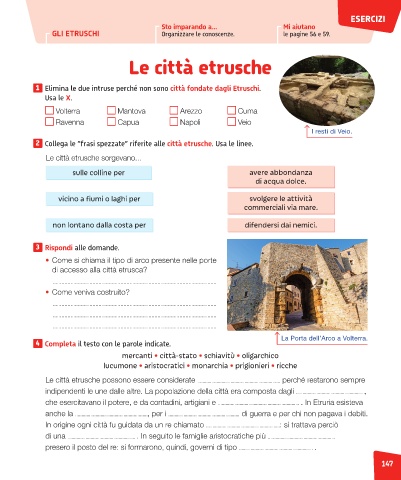 2 Collega le “frasi spezzate” riferite alle città etrusche. Usa le linee.