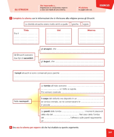 3 Completa lo schema con le informazioni che si riferiscono alla religione presso gli Etruschi.