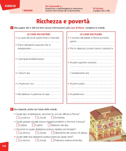 1 Alle pagine 104 e 105 hai letto alcune informazioni sulle case di Roma. Completa le schede.