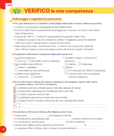 1 Per ogni affermazione su territorio e storia degli antichi Greci circonda l’alternativa corretta.