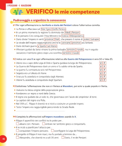 1 Per ogni affermazione su territorio e storia dei Persiani colora l’alternativa corretta.