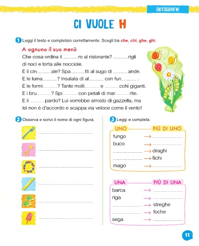 1 Leggi il testo e completalo correttamente. Scegli tra che, chi, ghe, ghi.