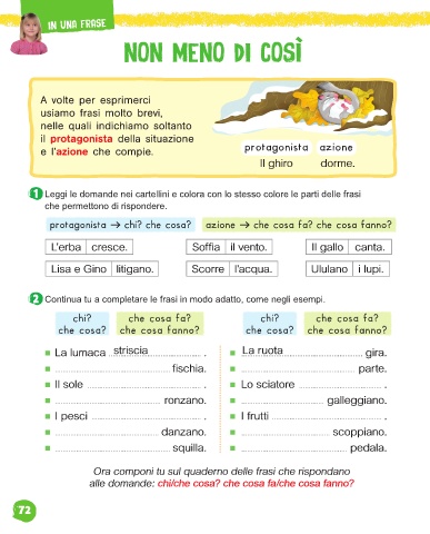 protagonista chi? che cosa? azione che cosa fa? che cosa fanno?