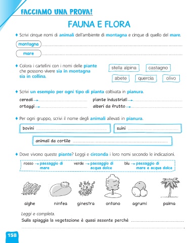 ♦ Scrivi cinque nomi di animali dell’ambiente di montagna e cinque di quello del mare.
