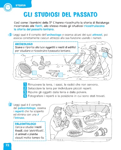 1 Leggi qual è il compito dell’archeologo e osserva alcuni dei suoi attrezzi, poi