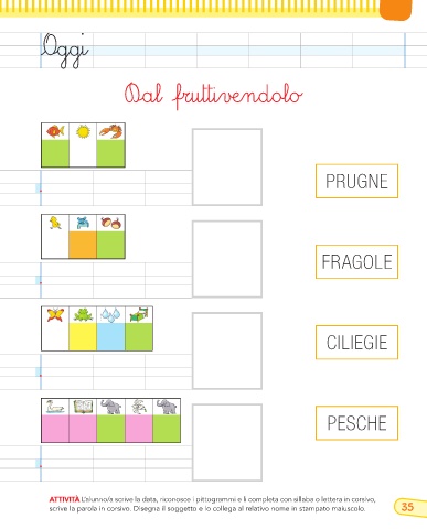 scrive la parola in corsivo. Disegna il soggetto e lo collega al relativo nome in stampato maiuscolo. 35