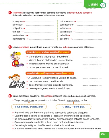 4 Trasforma le seguenti voci verbali dal tempo presente al tempo futuro semplice