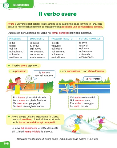 Imparerai meglio l’uso di avere come verbo ausiliare da pagina 113 in poi.