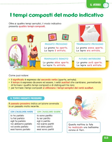 • il tempo è espresso da avere ed essere, i verbi ausiliari che cambiano, permettendo