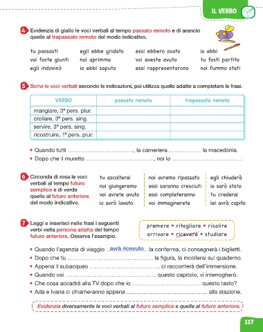 4 Evidenzia di giallo le voci verbali al tempo passato remoto e di arancio