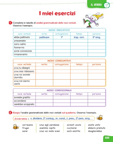 2 Esegui l’analisi grammaticale delle voci verbali sul quaderno. Osserva l’esempio.