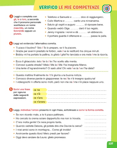 3 Leggi e completa con • Telefono a Samuele e .................. dico di raggiungerci.