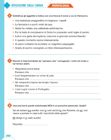 7 Riscrivi le frasi introdotte da “pensavo che” coniugando i verbi nel modo e