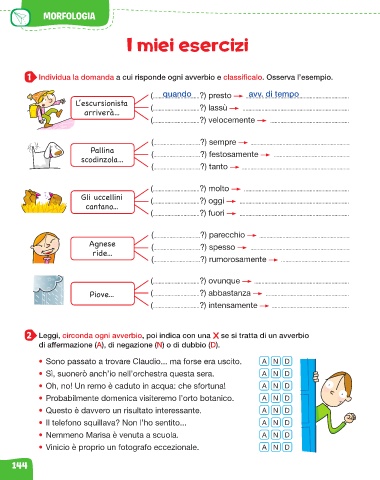 1 Individua la domanda a cui risponde ogni avverbio e classificalo. Osserva l’esempio.