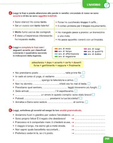 5 Leggi, sottolinea gli avverbi ed esegui la loro analisi grammaticale.