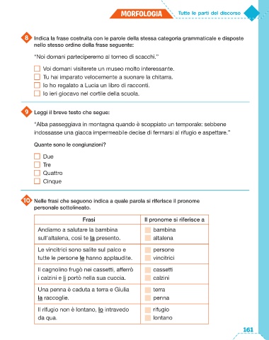 10 Nelle frasi che seguono indica a quale parola si riferisce il pronome