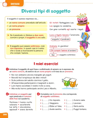 2 Individua un soggetto per 3 Completa con il pronome che corrisponde