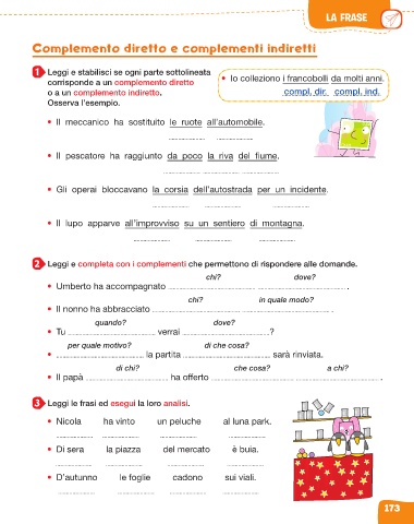 2 Leggi e completa con i complementi che permettono di rispondere alle domande.