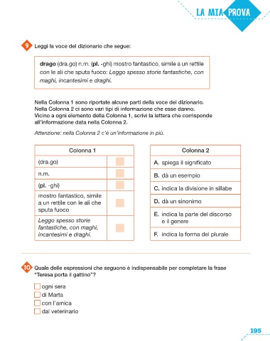 Vicino a ogni elemento della Colonna 1, scrivi la lettera che corrisponde