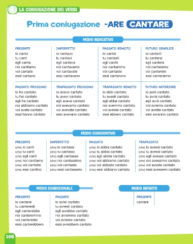 Prima coniugazione -ARE CANTARE
