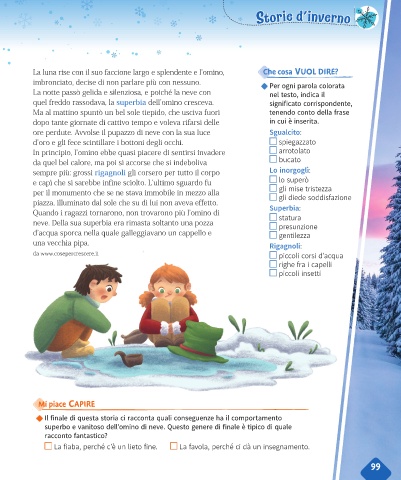 superbo e vanitoso dell’omino di neve. Questo genere di finale è tipico di quale