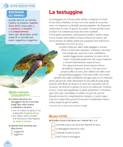 Questo testo presenta una L’animale scava una buca per deporre le uova.