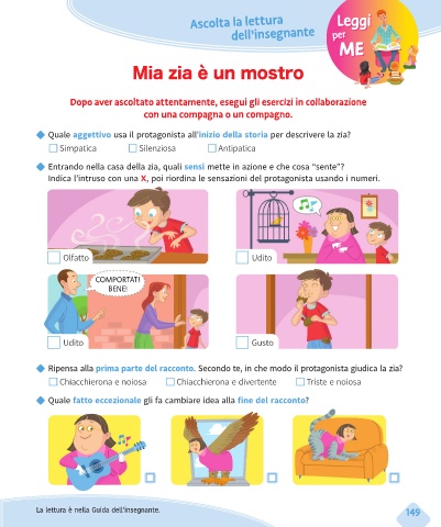 Indica l’intruso con una X, poi riordina le sensazioni del protagonista usando i numeri.
