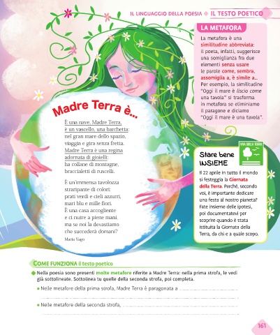 Nella poesia sono presenti molte metafore riferite a Madre Terra: nella prima strofa, le vedi